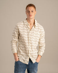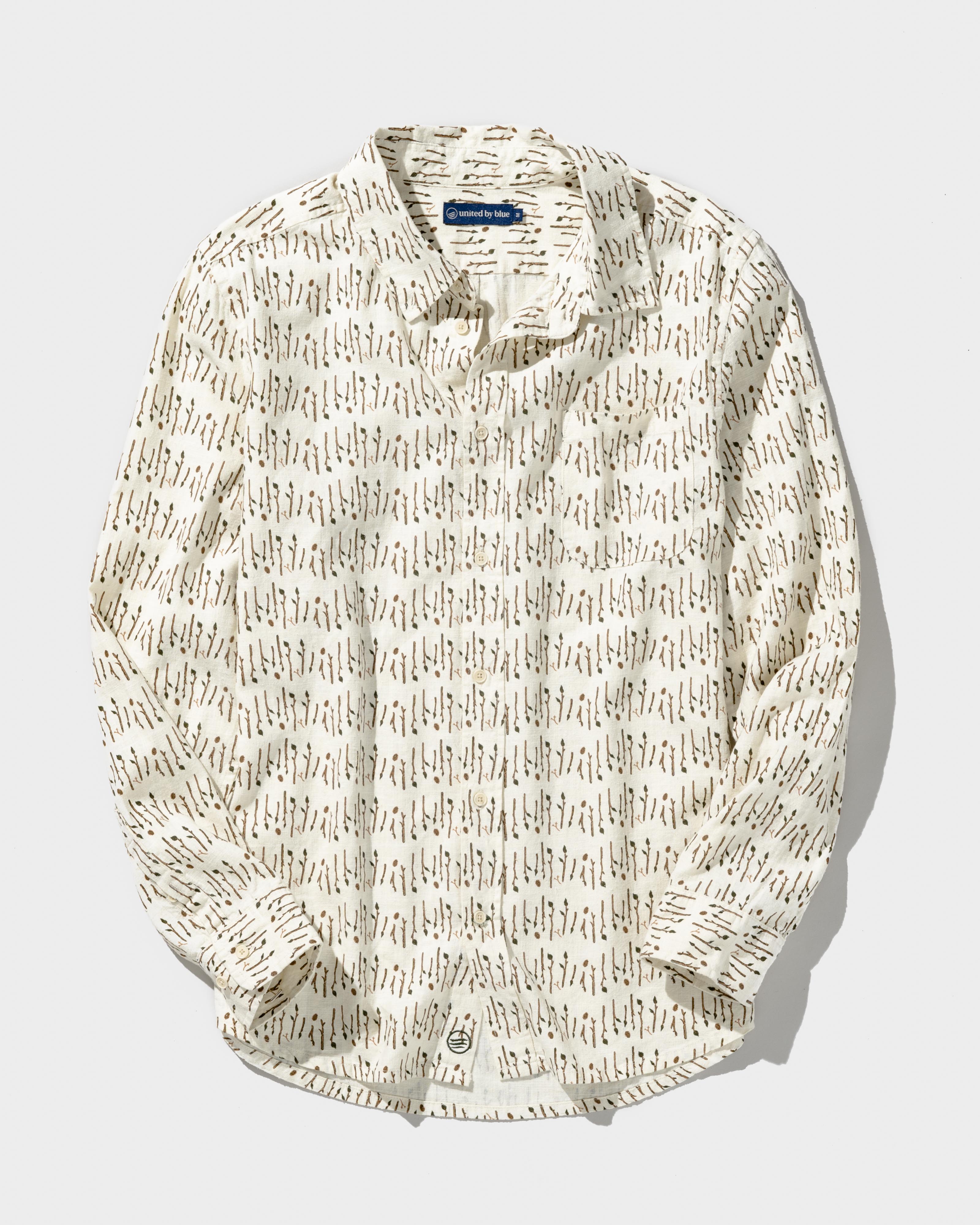 - Long-sleeve button down shirt with a shirttail hemline and patch pocket on left chest.