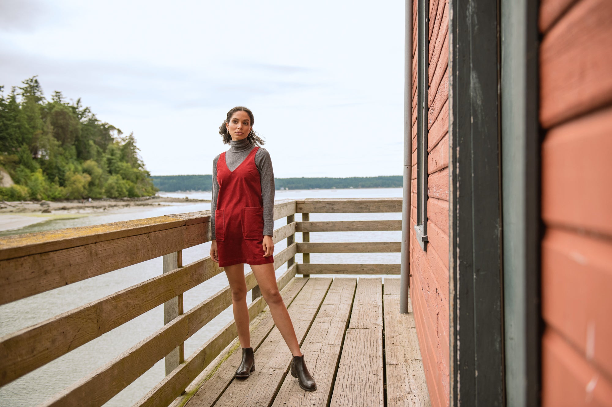 Organic Corduroy V-Neck Mini Dress