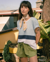 Color-blocked and slightly cropped with a boxy fit. It’s the pair-with-any-bottom top that’s just as easy as your other basics but with a little extra cool-factor.